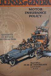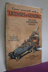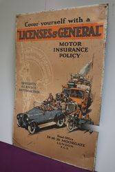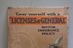 A Vintage Licenses & General Insurance Company Tin Pictorial Advertising Sign.. SOLD AS FOUND, Small cutout to right of sign..