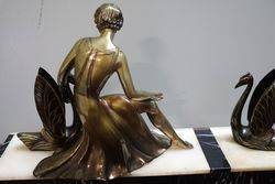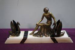 Art Deco gilt bronze female figure bathing, on a marble base. A quality unsigned bronze. 30 cm high, 11 cm wide, 11 cm deep
