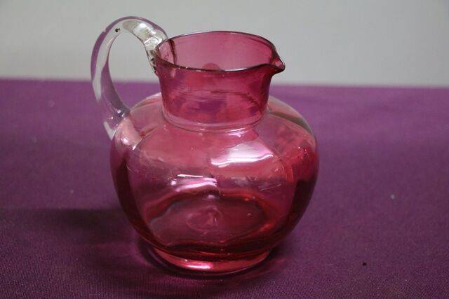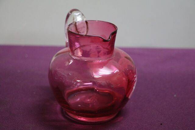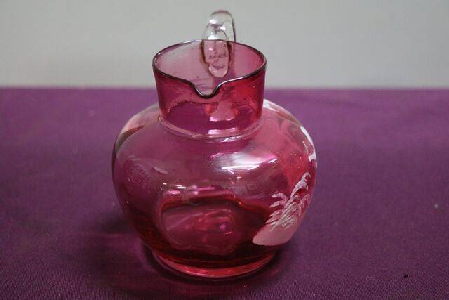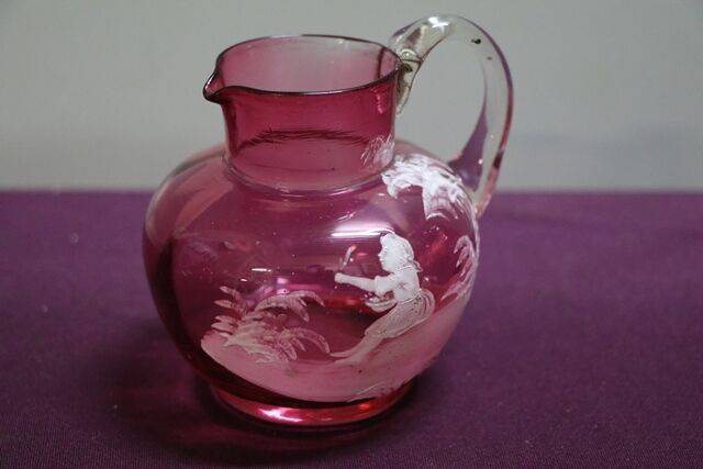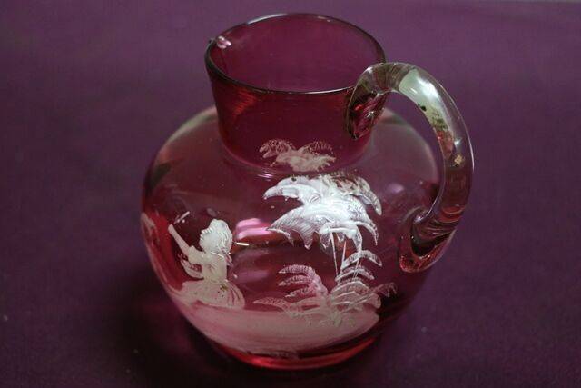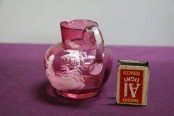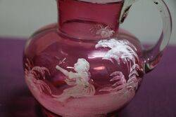 Antique Ruby Glass Mary Gregory Girl Holding Flower Tumbler. 12cm high.