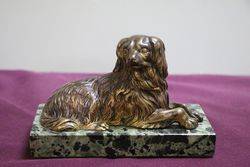 Vintage Bronze Figure of a King Charles Cavalier Spaniel On a Marble Base 16cm wide x 10 cm high x 7 cm deep