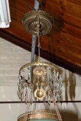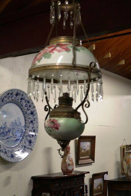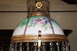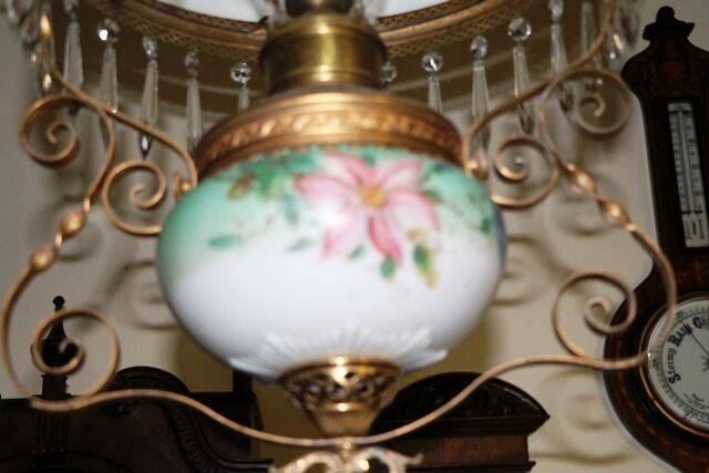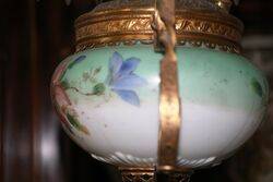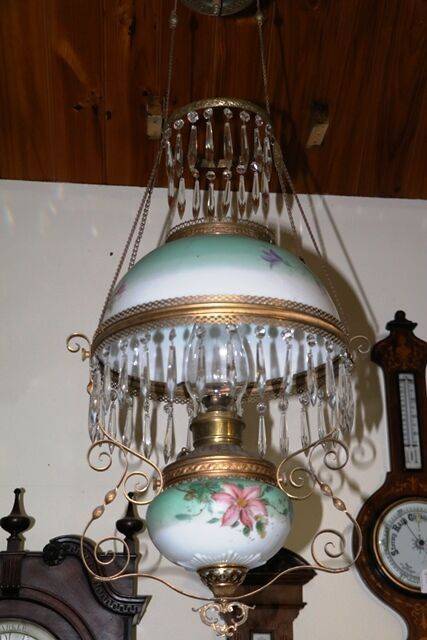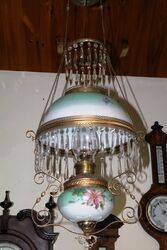 Large Victorian Banquet Lamp Green Font Vaseline Shade Brass Column measures 84cm tall
