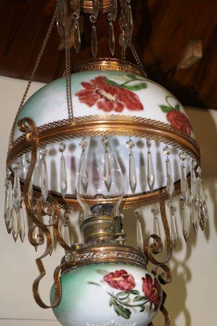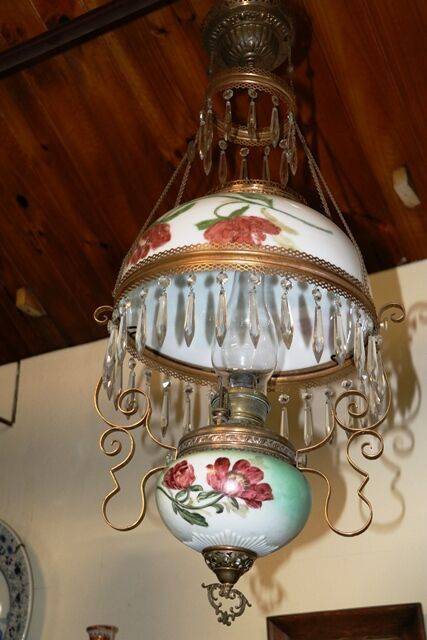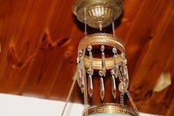 Victorian Oil Lamp, Double Burner Pink Milk Glass Font With Ruby Shade. Cast & Brass Column. 75cm high.