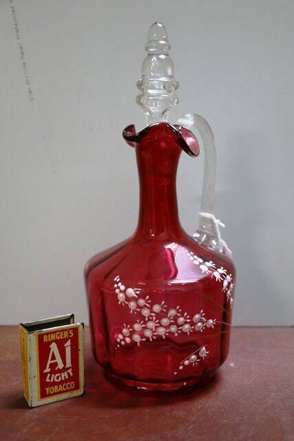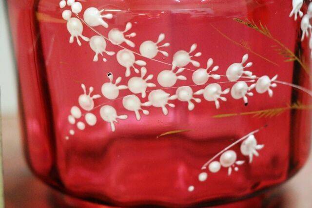 Hand Decorated Victorian Ruby Glass Bowl 8cm tall