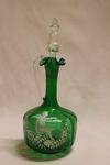 Victorian Mary Gregory Style Enamel Painted Green Glass Wine Jug. 29cm tall