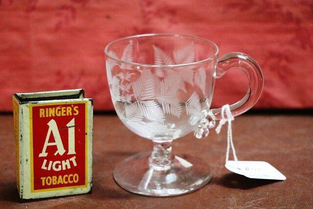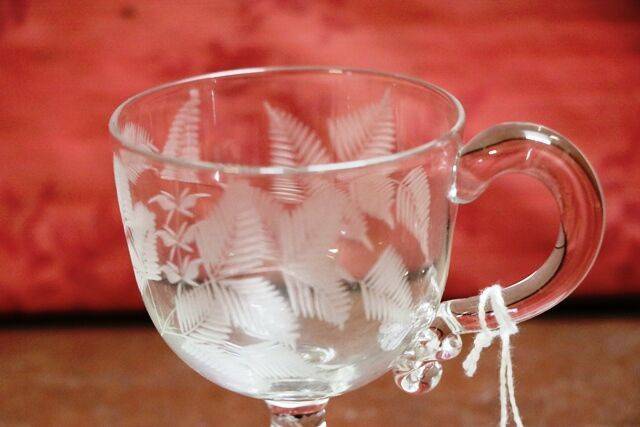 Miniature Antique Small Moser Green Glass Cup. 5cm high.