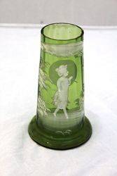 Victorian Mary Gregory Green Glass Vase 15cm tall