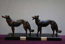 Art Deco Spelter And Marble Pair Of Borzoi Dogs C1930 52cm wide x 21cm high 12cm deep