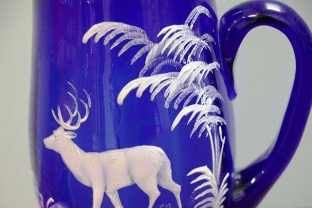 GENUINE.Antique Ruby Glass White Enamel Painted Vase 22cm tall