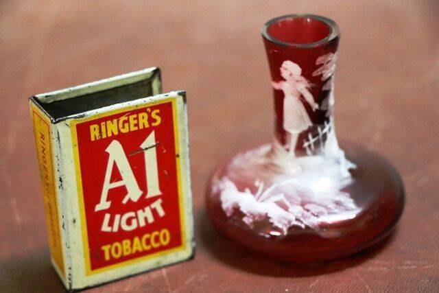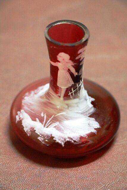 GENUINE.Antique Ruby Glass Mary Gregory Small Jug 10cm tall