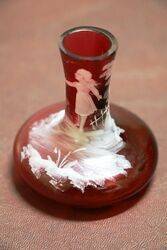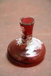 Antique Hand Enameled Ruby Glass Wine Jug. 26cm high.