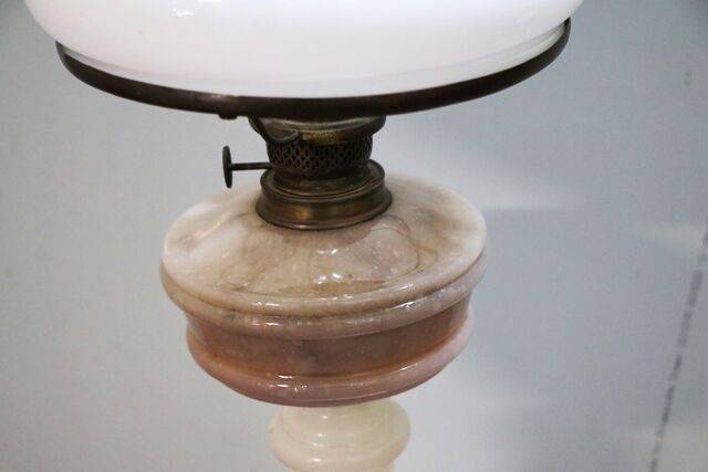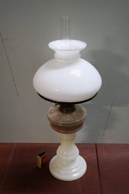 Antique Glass Electric Lamp + Shade 32cm wide x 66cm high