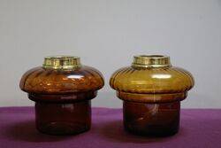 Pair of Antique Amber Glass Oil Lamp Fonts With Brass Collars
