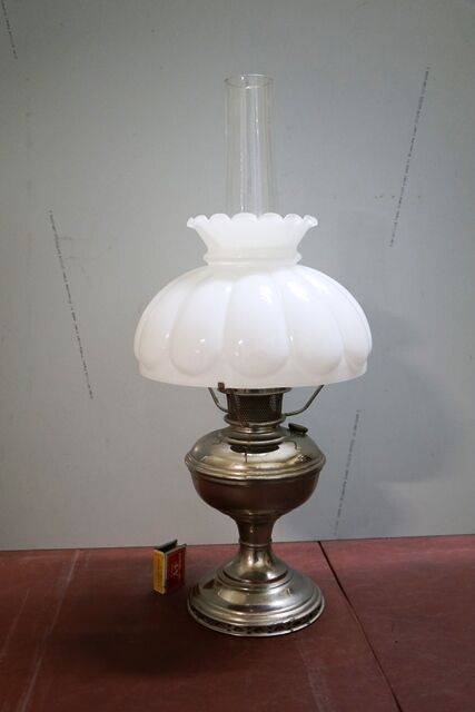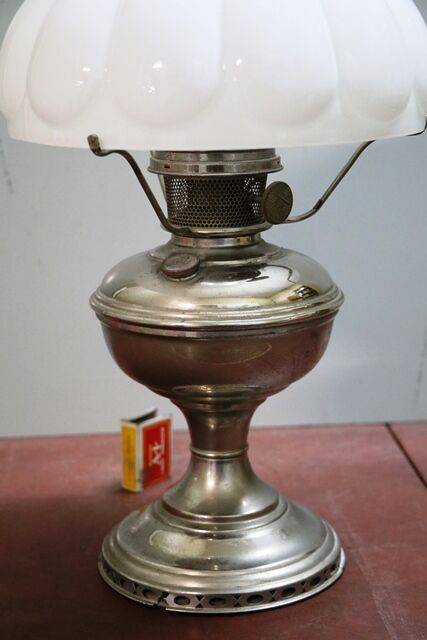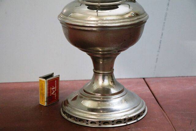 Victorian Table Lamp w/ Cut Lead Base matching thumb cut font, Hinks double oil burner original shade C1885