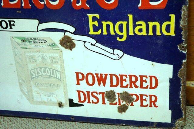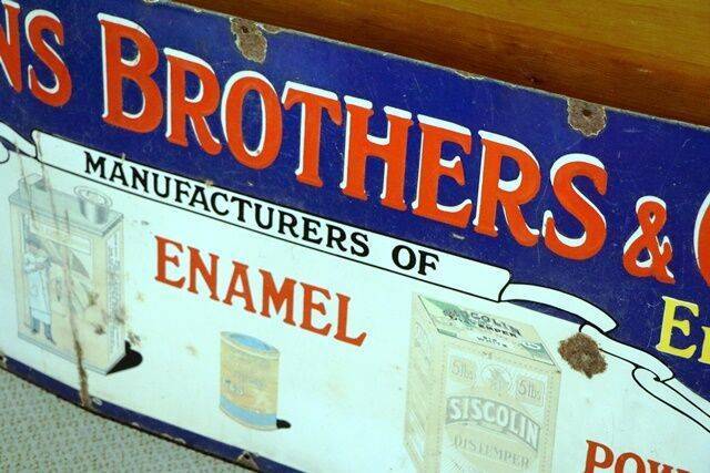 Classic Binnys Cotswol + Angola Fabrics sold here enamel sign dead clean condition 14 x 18ins