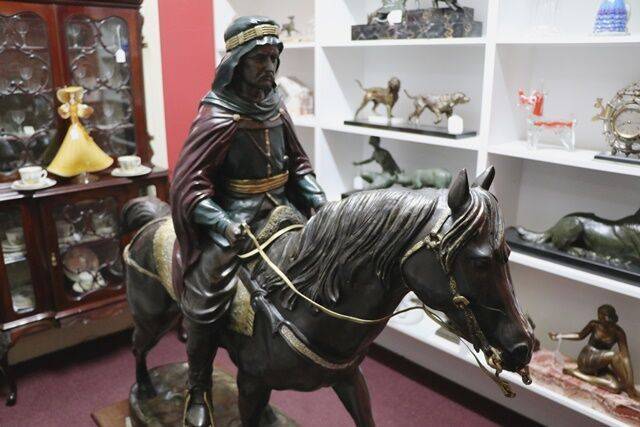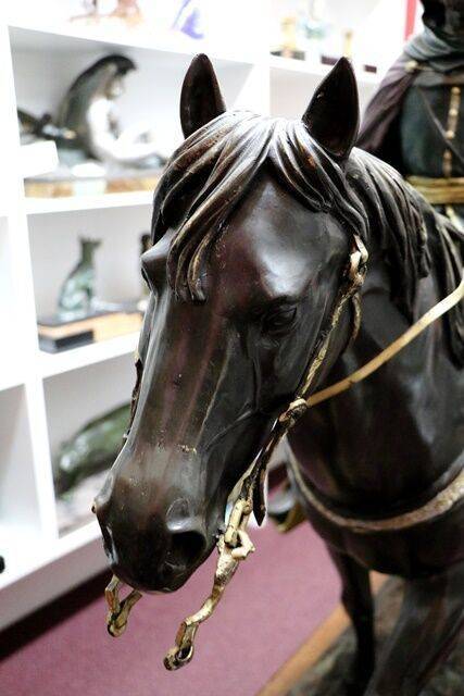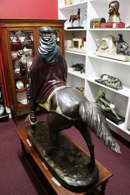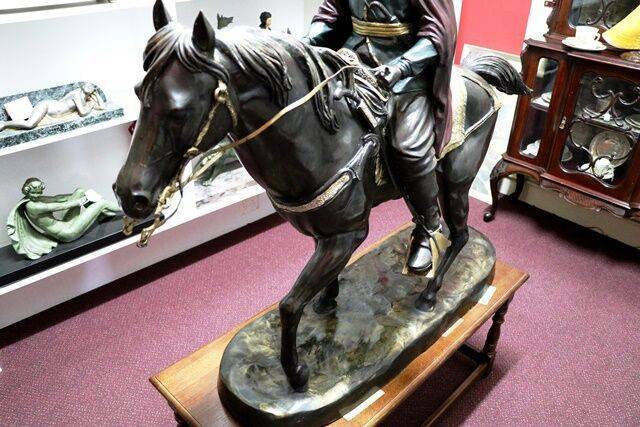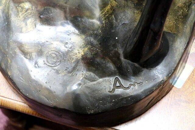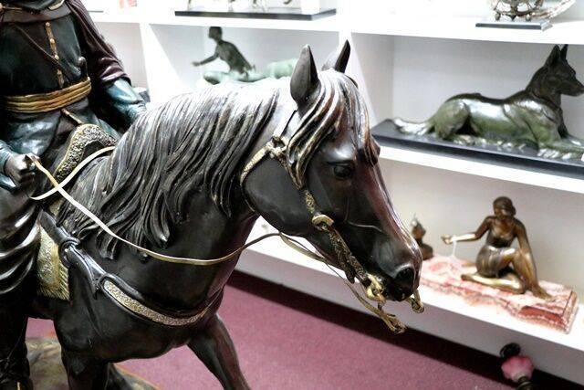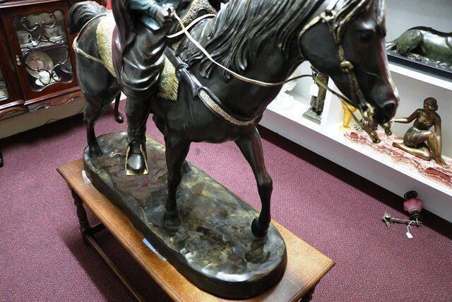 ID: AD265Stunning French Art Deco green spelter figure C1925 32 cm high, 64 cm wide, 18 cm deep