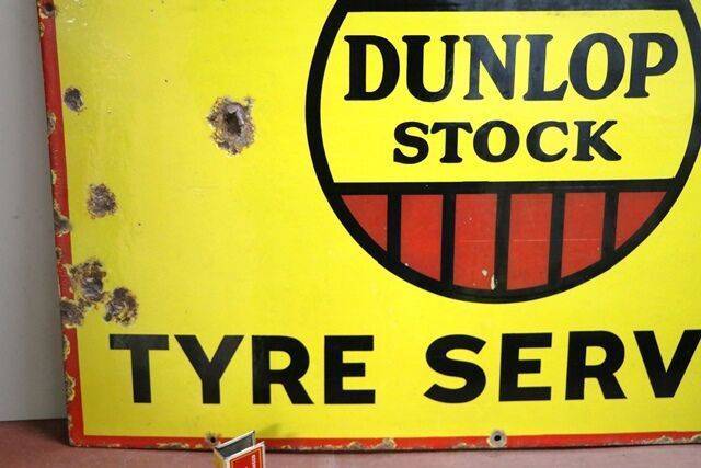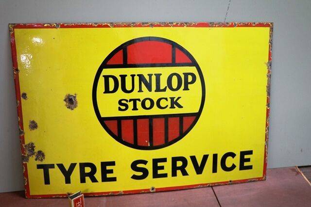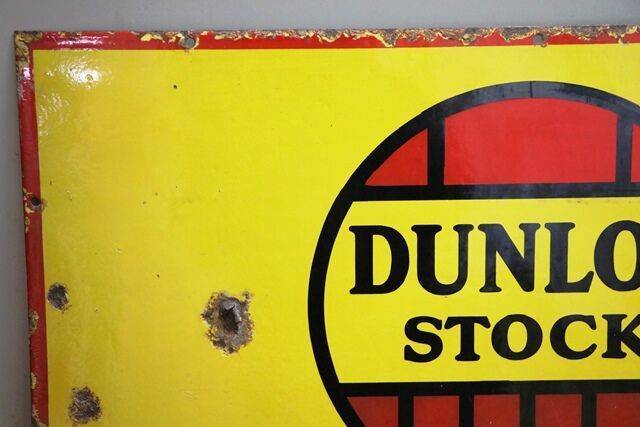 Vintage Dunlop Stock Tyres Enamel Advertising Sign. Great Colour & Gloss. 76cm wide x 29cm high.