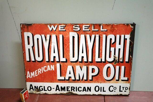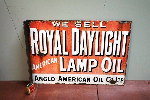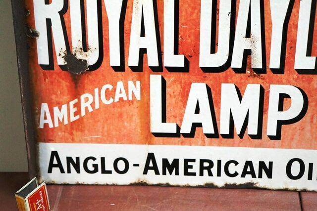 Antique Royal Daylight Lamp Oil Double Sided Enamel Sign. #