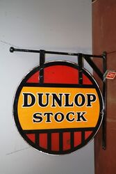 Vintage Dunlop Stock Double Sided Enamel Sign with Original Bracket. In very nice condition, size of sign without the bracket is 46cm dia.