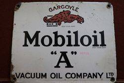 Mobiloil Gargoyle Enamel Advertising Sign "A" Has Had some Restoration as per photos 23cm tall 28cm wide