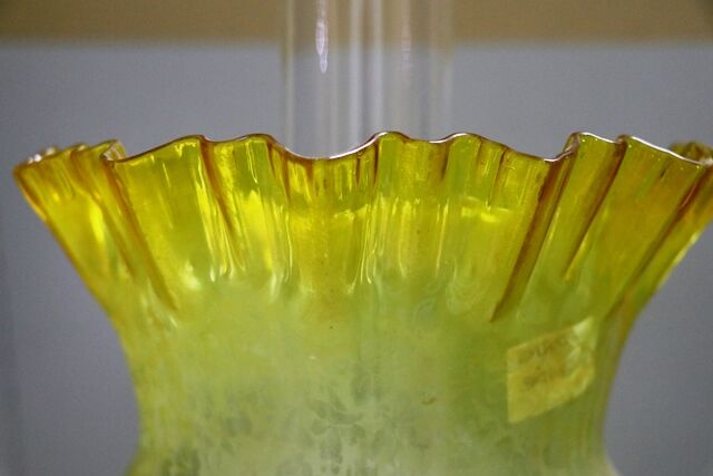 Stunning Quality Cut Lead Glass Oil Lamp All Original Except for 1980s Etched Shade 20cm wide x 74cm tall