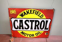Antique Castrol Wakefield Motor Oil Double Sided Post Mount Enamel Sign. 51cm x 40cm.