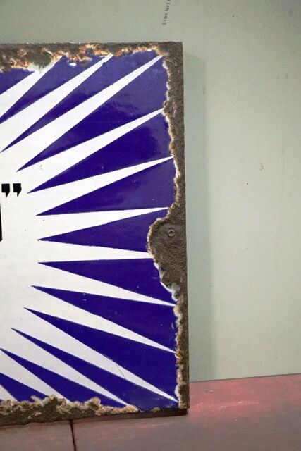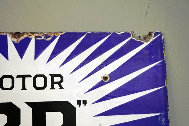 Vintage Gargoyle Mobiloil Double Sided Post Mount Enamel Sign. Vacuum Oil Company ltd. 51cm wide 40cm high.