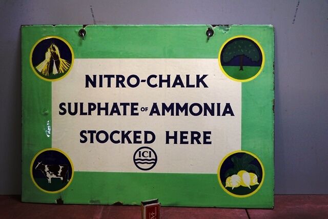 A Double Sided Farming Enamel Sign in Stunning Condition Advertising ICI Nitro-Chalk Sulphate of Ammonia. with 4 Pictorial Captions. NO TOUCH UPS,
