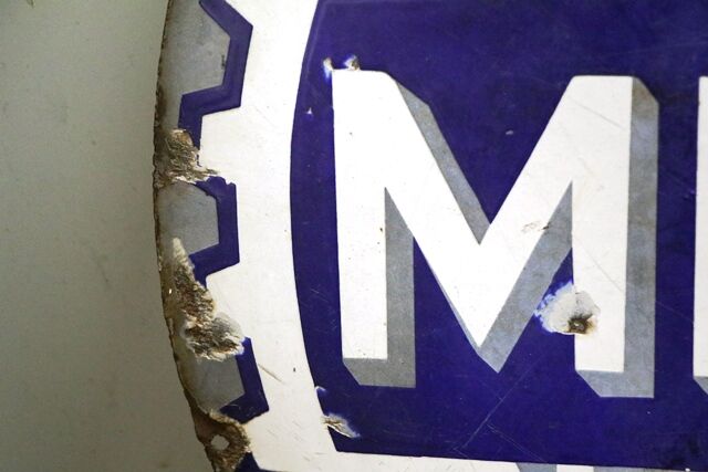 Mobiloil Gargoyle Enamel Advertising Sign ``BB'` Has Had some Restoration as per photos 23cm tall 28cm wide