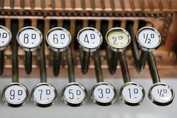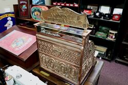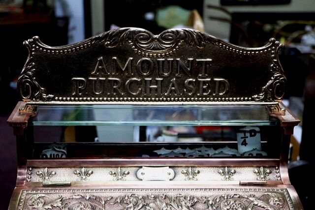 Antique National All Brass Finish Cash Register Model 235. Complete with Amount Purchased Top Sign. Very nice example.