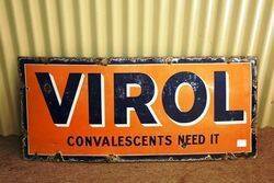 Vintage Orange Virol Convalescents need It Enamel Sign. 122cm wide x 53cm high
