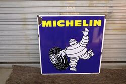 Vintage Michelin Square Edge Enamel Advertising Sign. Made in France. March 1974. 95cm x 95cm.