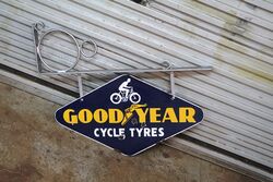 Vintage Goodyear Cycle Tyres Double Sided Lozenge Shaped Enamel Sign with Bracket. 102cm wide x 80cm high including bracket.