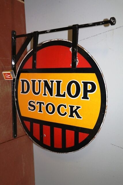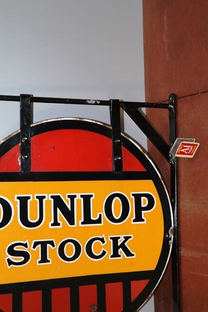 Vintage Dunlop Stock Double Sided Enamel Sign. #