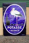 Superb Vintage French Potasse D`Alsace Pictorial Stork Enamel Sign in Lovely Condition. 147cm tall x 100cm wide