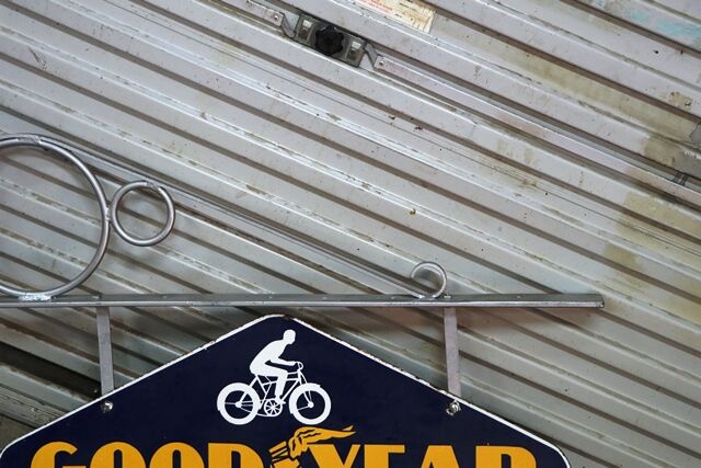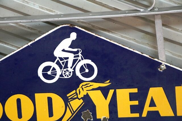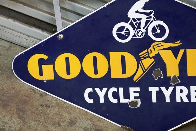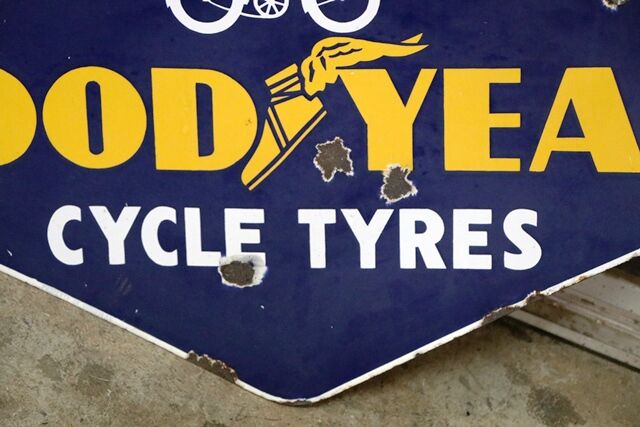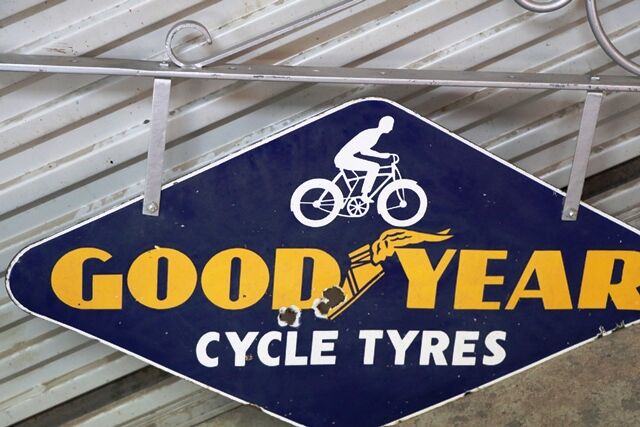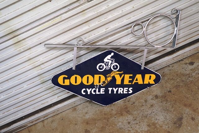 Vintage Goodyear Cycle Tyres Double Sided Lozenge Shaped Enamel Sign #