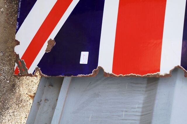Butagaz Double Sided Die Cut Enamel Sign 70cm tall 41cm wide