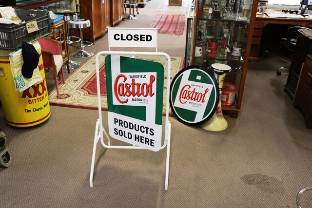 Dunlop Stock Station Double Sided Enamel Sign. A post mount sign the normally had a large clock on one or both sides. 64cm x 110cm.