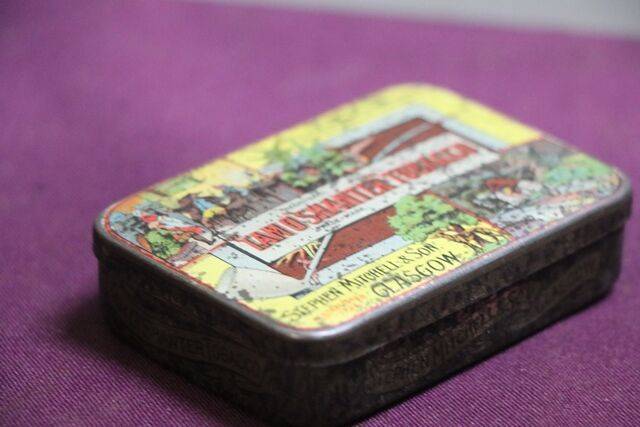 Players Navy Cut Tin in good order has slight dent to lid and some surface scratches measures 17x7x5cm