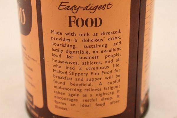 Slippery Elm Food, Baby Food 1lbs Tin a nice pictorial early baby food tin in good condition has some light scratches but no dents and is overall a very nice clean tin