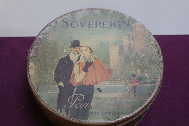 Squirrel Confections Cherry Lips Tin a nice tin some paint loss and scratches and some slight surface rust a good tin overall