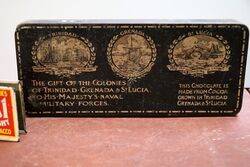ID: COL1536Antique Pictorial Chocolate Collectors Tin. The Gift of the Colonies of Trinidad. Grenada & St Lucia to HIs Majesty's Naval & Military Forces.