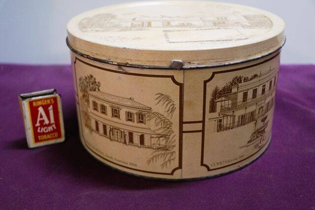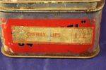 Squirrel Confections Cherry Lips Tin a nice tin some paint loss and scratches and some slight surface rust a good tin overall
