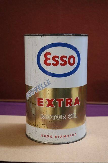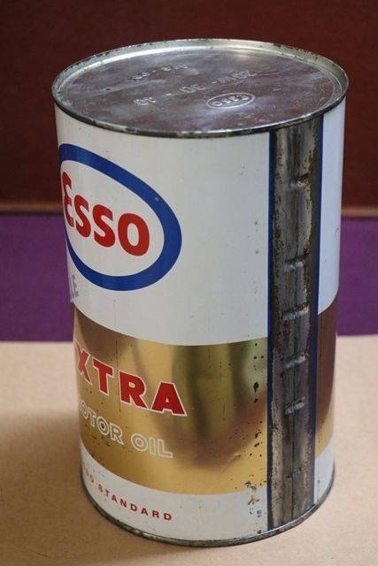 Classic Esso Extra Motor Oil Tin. Pictorial Oil Drip Figures Taking a Ride