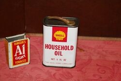 Vintage Shell Household Oil 4 oz Oiler. Very clean bright Tin.