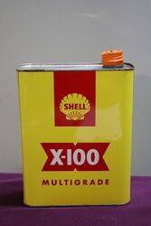 New Old Stock and Unopened Shell X-100 2 Litres Motor Oil Tin, Extremity Bright Colours.