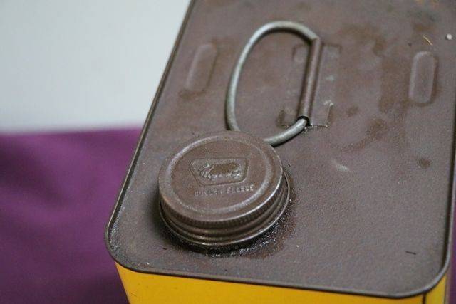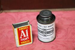 Small Vintage Burrsthreo Lubricating Oil Tin. With Contents. For Lubricating all Types of Light Machinery.