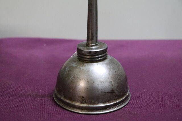 Vintage 1/3 pint Boat Shape Oiler with Button Pump Action.
