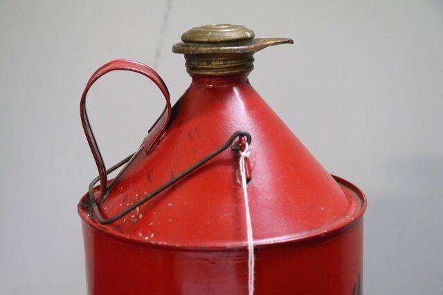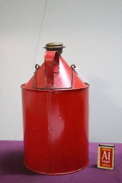 Shell Motor Spirit 2 Gallon Tin has been repainted has some dents has original brass cap