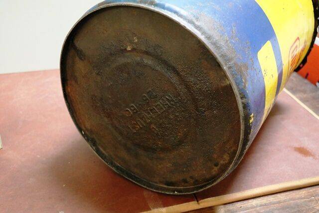 A Lovely Original Shell 2 gallon Running Board Fuel Can. With original brass Shell Cap.. Dated April1939 by Valour.