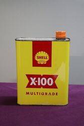 New Old Stock and Unopened Shell X-100 2 Litres Motor Oil Tin, Extremity Bright Colours.